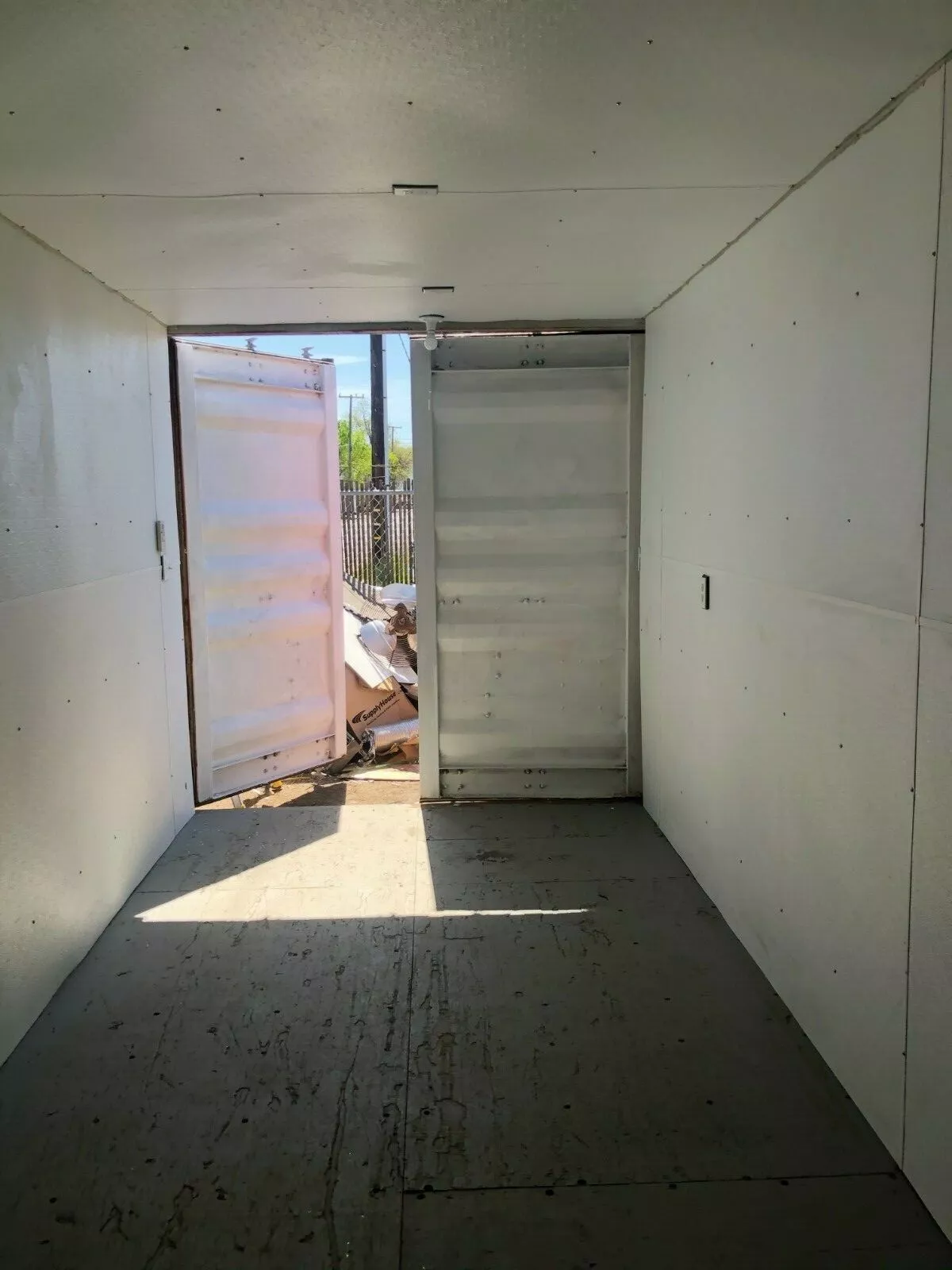 20 ft shipping container greenhouse that is insulated, includes outlets/lights, its own personal HVAC system, and breaker box. Condition is “Refurbished“. The container is water tight and only has the front swinging doors.
